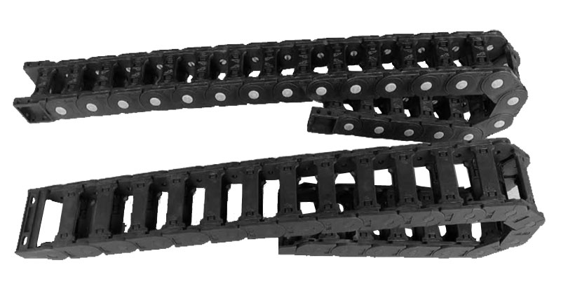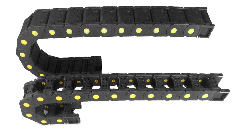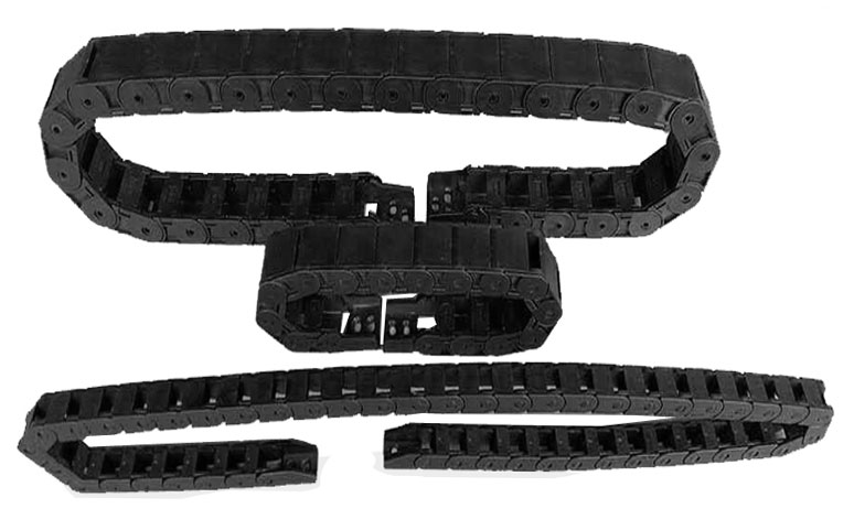 內(nèi)高:選擇內(nèi)置電纜,油管,氣管,水管等中粗的一根作為參考高度,加上至少10%的高度空間作為拖鏈內(nèi)高。如果重疊按重疊后實際高度作為參考高度。內(nèi)寬:選擇較粗的一些電纜,油管,氣管,水管等,其外徑之和作為拖鏈內(nèi)寬的參考,并留有至少10%的寬度空間。彎曲半徑:選擇內(nèi)置電纜,油管,氣管,水管等中的彎曲半徑作為參考值,并留有10%以上的空間。