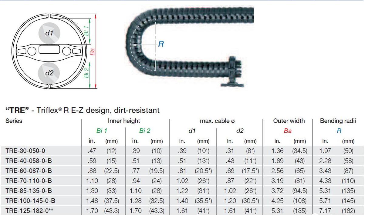 首先來看我們當(dāng)前使用的TRE-100型塑料拖鏈的數(shù)據(jù):
